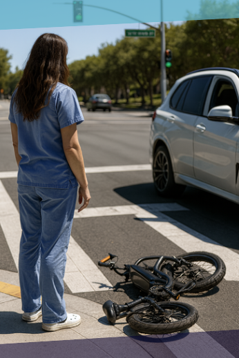 Defendant blamed Adam, claiming he contributed to his own accident. However, we were able to prove Adam complied with every rule expected of a pedestrian or bicyclist. He stopped at the corner, pressed the crosswalk button, waited for the pedestrian signal, and only entered the crosswalk once the light turned to the “WALK” symbol. He was fully within the marked crosswalk when defendant turned her vehicle into him. Adam’s account was verified by witnesses. The law is clear: pedestrians and bicyclists have the right of way in a marked crosswalk.